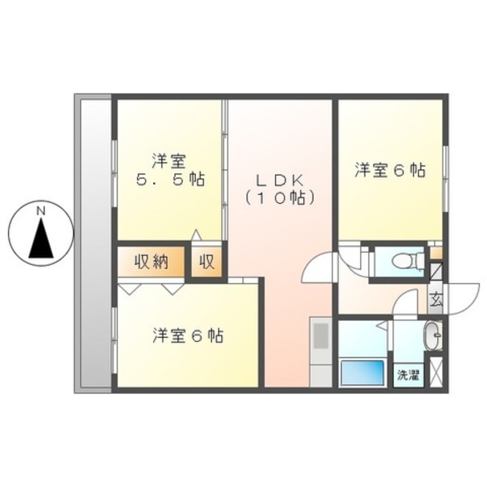 | 間取り内訳 | 3LDK (洋室6 6 洋室5.5 LDK10) | 方位 | 西 |