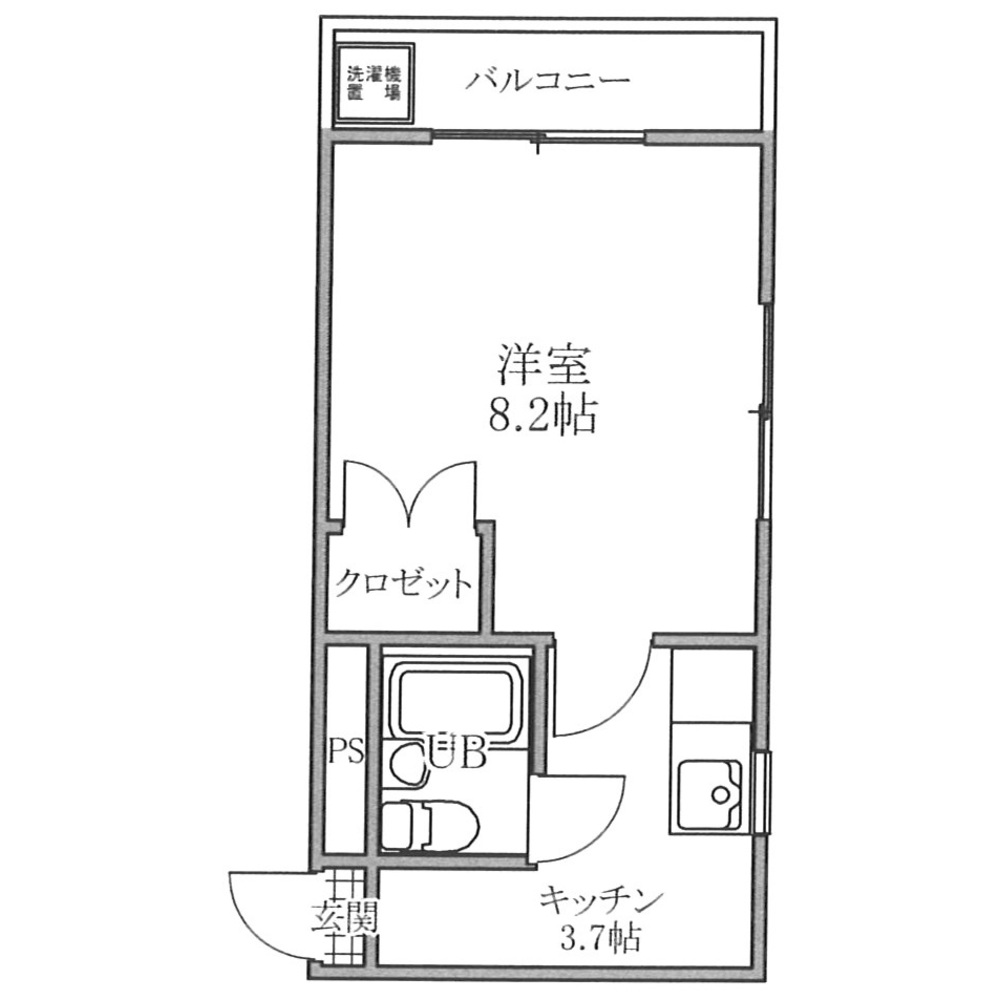 | 間取り内訳 | 1K (洋8.2) | 方位 | 北東 |